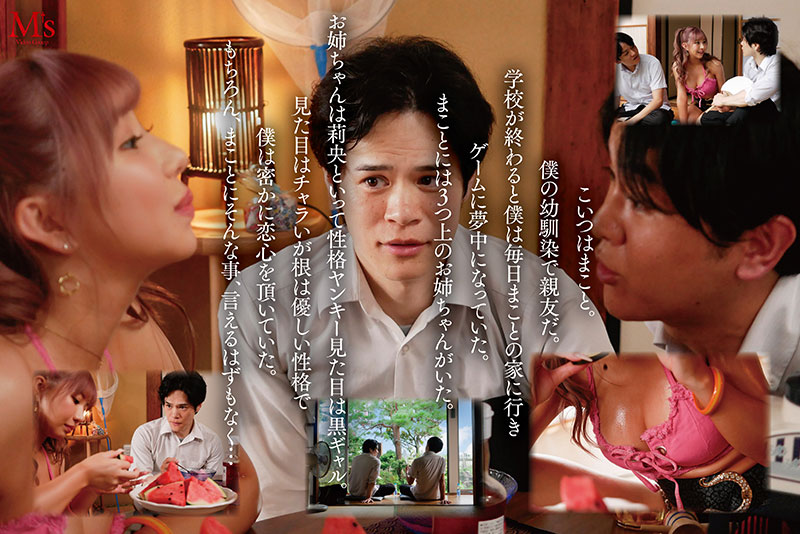 これは僕と憧れの莉央姉ちゃんのひと夏だけの甘エロい思い出…僕の名前はまさ。僕には密かに恋心を抱いている人がいる。それは小学校からの幼馴染で親友のまことの姉の莉央姉ちゃんだ。もちろん、まことは知らない。莉央姉はギャルでガサツでズボラなところもあるけど、いつも優しいし、いい匂いがするし、それになんか妙にエロい。ある日、まことに貸していたゲームを返してもらうために家に訪れるが、まことは不在。「じゃあまた明日来ます…」「大変でしょ?暑いからまことが帰ってくるまで中で待ってなよ!」家に憧れの莉央姉と2人きり。ドキドキしていた。「まさ君って彼女いたことないって言ってたけど童貞なん?」僕は恥ずかしくて下を向くしかなかった…「何?照れてんの?かわいい~(笑)」「あっ!いいこと思いついた!ちょっとこっち来て!」莉央姉はそう言って押入れの中に入り、僕を手招きした。暑い夏の昼下がり、真っ暗な押入れの中に親友の姉ちゃんと2人だけ…心臓がバクバクしていた。暗闇の中で僕の唇に柔らかい何かが触れた…キスしたことある?莉央姉の唇だった!そのまま舌を絡めてくる。密室に響き渡るビチャビチャ音…僕の股間は熱く硬くなっていた…真っ暗な中で懐中電灯で結合部を照らしながら汗だく筆おろしSEX。汗でテカるラテ色の日焼け肌!莉央姉の凄いエロテクにザーメン搾り取られまくり!めっちゃいいチ〇ポ持ってるじゃん!エロスイッチが入って腰ガン振り!止まらない杭打ち騎乗位!あ…出ちゃう!中に出してもいいんよ!